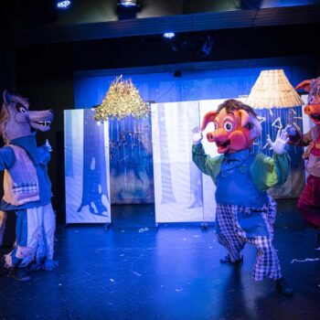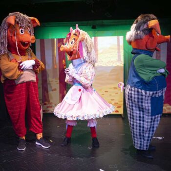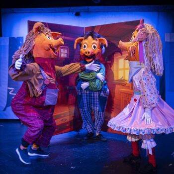 „Cei trei purceluși” este mai mult decât o simplă adaptare a unui basm cunoscut – este o aventură muzicală și plină de umor, în care copiii și părinții descoperă împreună că jocul, prietenia și curajul sunt armele cele mai de preț împotriva fricii și a vicleniei. Am ales să construim acest spectacol ca pe o joacă serioasă: cântecele devin lecții de viață, umorul se împletește cu emoția, iar interactivitatea îi face pe cei mici să devină parte a poveștii. Fiecare personaj are un drum propriu – purcelușa isteață, fratele bâlbâit, dar bun la suflet, purcelușul grăbit și arogant, mama grijulie, lupul șiret, dar comic, pompierul erou – toți aduc pe scenă fragmente din lumea copiilor de astăzi, unde joaca se întâlnește cu învățătura.” ( Dan ȚOPA, regizor artistic)