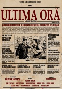 “Ultima oră” e un spectacol viu, cu ritm alert și personaje bine conturate, în regia lui Răzvan Săvescu, foarte cunoscut publicului ca realizator al producțiilor de televiziune: Vacanța Mare, Clanul Popeștilor, La bloc, La servici, Gașca, Nimeni nu-i perfect etc.